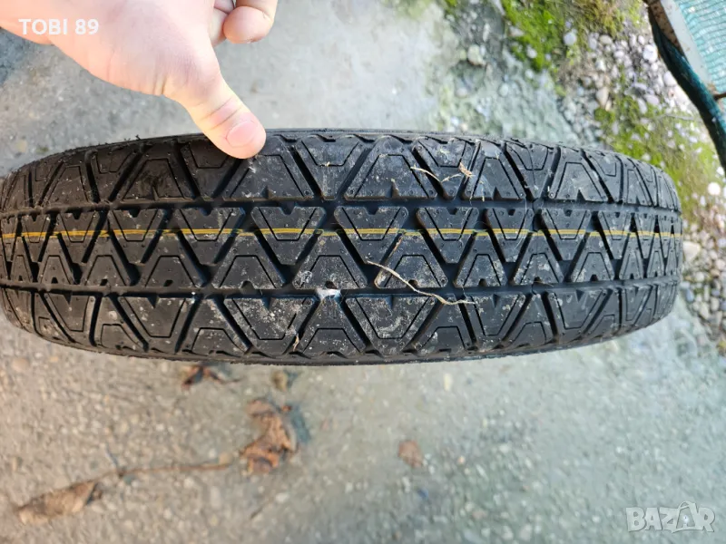ГУМИТЕ СА 2 БРОЯ ЕДНА АЛУМИНИЕВА И ЕДНА ЖЕЛЯЗНА!!! НОВА! Оригинална резервна гума с джанта(патерица) 16''цола със 5 Отвора за болтовете. НОВА-не е ползвана-Тип патерица, Оригинална е , И Оригинална Резервна Гума с Алуминиева Джанта Размерът на гумата е 225/60/17'' , Делителната е 5х114,3мм ,централен отвор 66,1 ЕТ 48 Става за Всички модели Джипове Кия, Хюндай, Хонда и Нисан със 5 Отвора за болтовете!