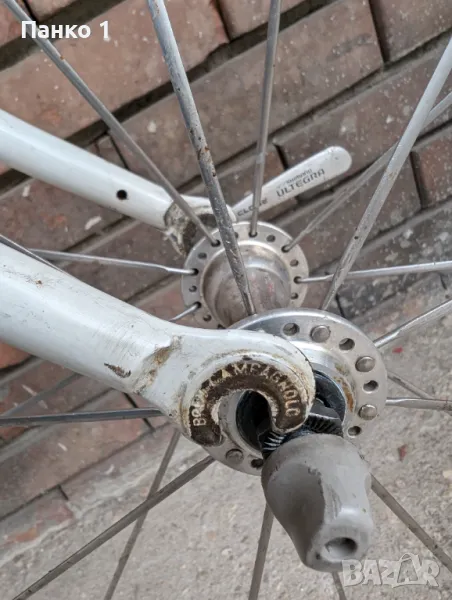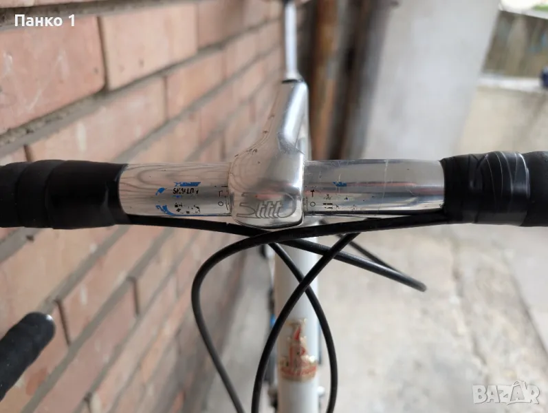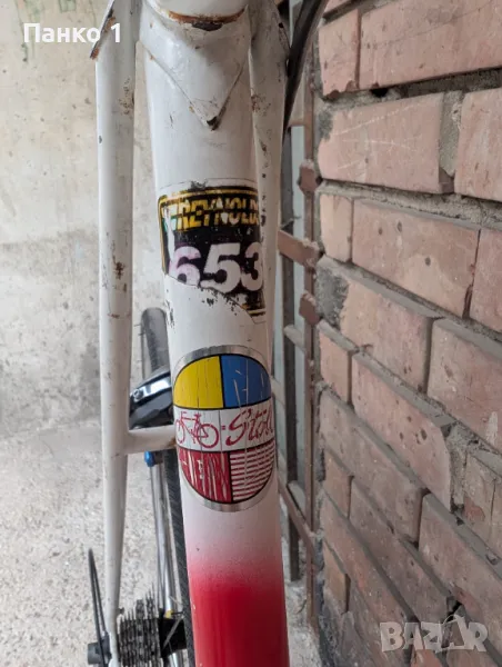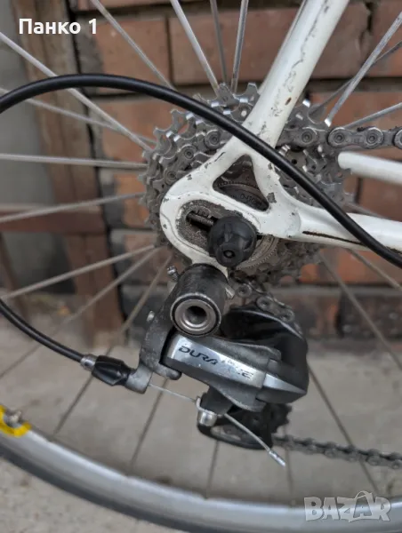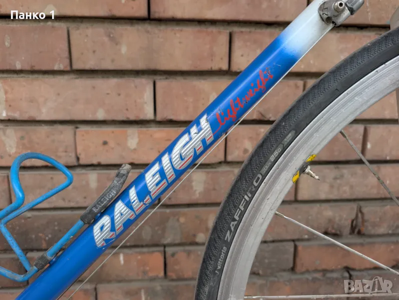 Фреймсета е нещо прилично рядко, къстъм произведено в под отдела на Raleigh - Lightweight, не толкова рядко колкото SBDU моделите, но пак ТОП клас изработка, по спомен гола рамката тежеше 1.8кг и вилката около 700 грама, което за нещо което е 60см вертикал и 58см хоризонал(измерени център-център) е доста ниско тегло. Фреймсета е напревен от комплект тръби Рейнолдс 653, като ушите са Campagnolo. Виждат се доста визуални забележки по рамката, леки ръждички, но без ремонти или друг тип проблеми. Монтажа е Dura Ace 7900 2 по 10 скорости, касетата е 12/26, курбелите са 53/39 на 172.5 рамена. Монтажа се вижда, че не е в страхотно визуално състояние, но работи безупречно. Каплите са къстъм - Шини дълбок профил Miche Blowind и главини безименни. Колелото е страшно пъргаво, настроено и готово за каране.