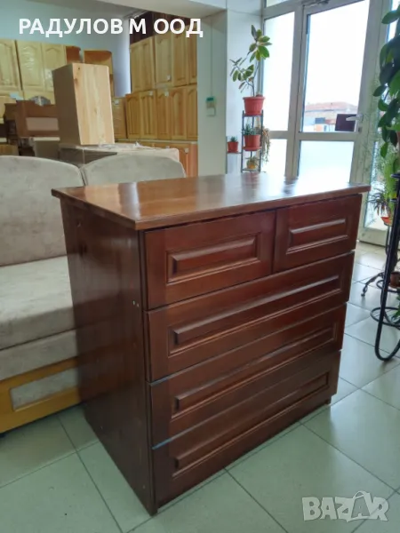Скринът е с размери 80*80*50 см. Разполага с 3 широки и две тесни чекмеджета.