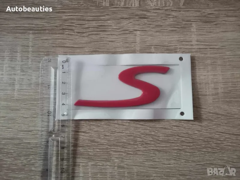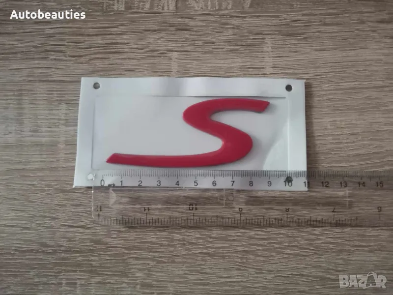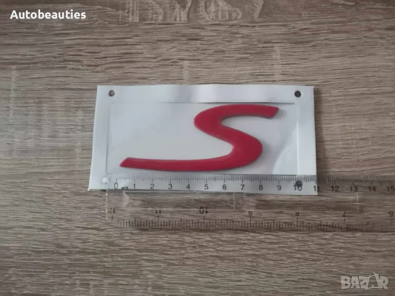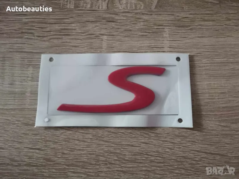 нова емблема S в червен цвят, подходяща за всички модели Porsche. Размерите са дадени на снимките (9 см х 3 см).