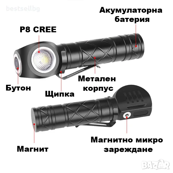 Мощен акумулаторен фенер 3 в 1: Челник, фенер и работна лампа с подарък допълнителна батерия