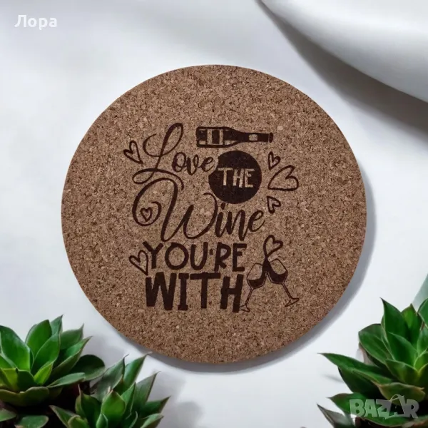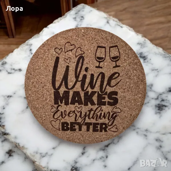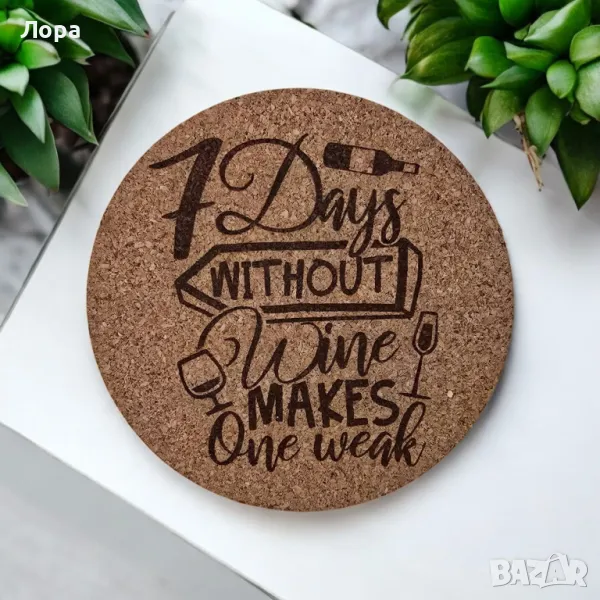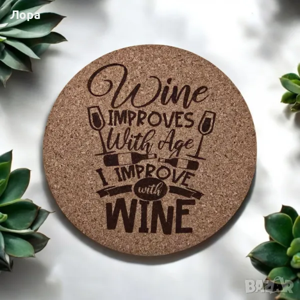 Лазерно гравирани коркови подложки за чаши - ВИНО → Обява 48416628