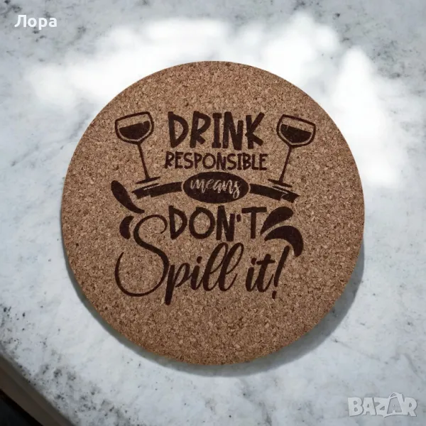 Лазерно гравирани подложки за чаши от корк. Цената е за 1 брой, при поръчка на повече бройки - отстъпка.