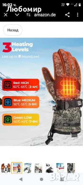 Широко нагряване: нагряване около пръстите, регулируема температура с 3 степени на нагряване, до 65°C.Дизайн на сензорен екран: лесно е да управлявате интелигентни устройства с 2-екранни сензорни пръсти, без да ги сваляте.Ветроустойчив: еластични катарами, регулируеми маншети и вграден ветроустойчив слой за предотвратяване на навлизането на вятър. Неплъзгащата се длан осигурява по-здрав захват.Водоустойчивост и топлина: дори в дъждовни и снежни дни, здравите ръкавици с дебела поларена подплата и водоустойчив материал ви държат топли и сухи.