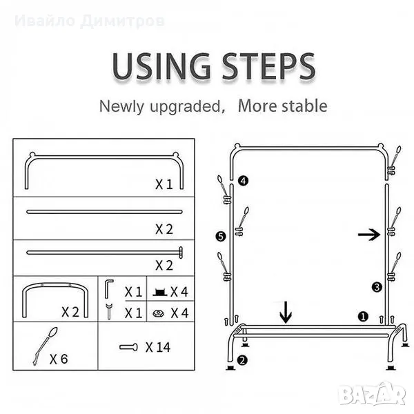 Стойката Drying Woo, която Ви предлагаме е предназначена за съхранение на любимите Ви дрехи и обувки. Това, което я отличава от останалите стойки е, че е лека, лесно-сглобяема и същевременно съчетава в себе си минималистичен дизайн. Стойката за дрехи и обувки няма да заема много място, а същевременно ще Ви подари място за съхранение. Размерите й са - 150x110x40см.