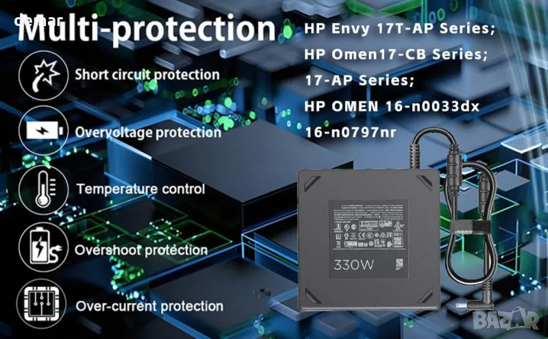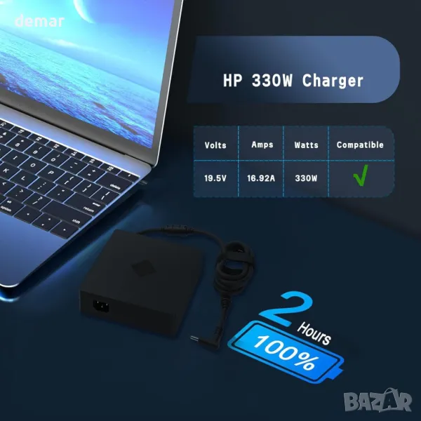 330W интелигентен променливотоков захранващ адаптер, съвместим с геймърски лаптоп HP OMEN