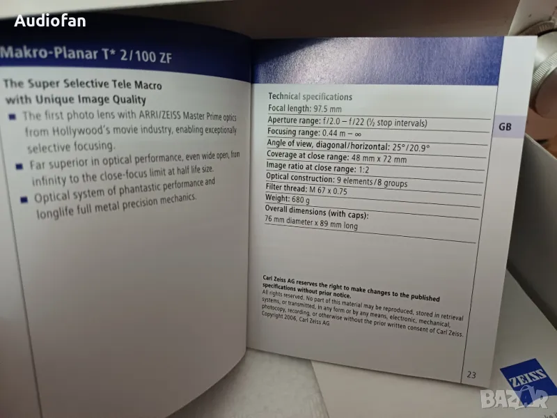 Zeiss MAKRO - PLANAR 100mm F/2 T* → Обява 48418632
