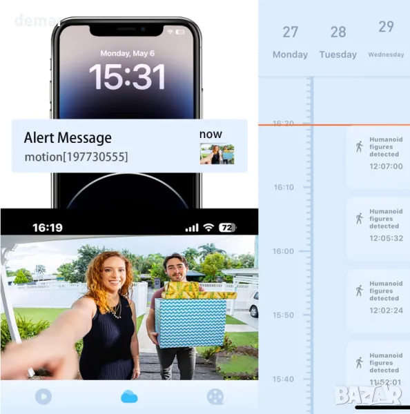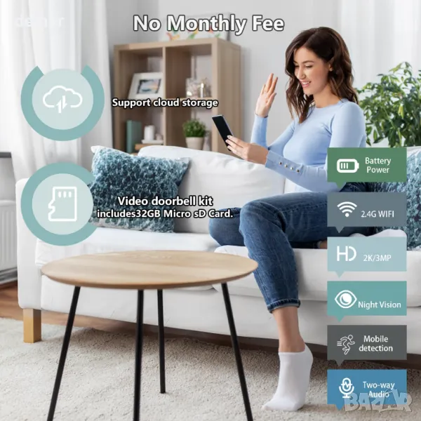 Тази безжична камера със звънец осигурява рязко 2K/3MP FHD видео с нощно виждане за 24/7 наблюдение, разполага с двупосочен звук за безпроблемна комуникация и предлага предупреждения за откриване на движение към вашия смартфон. Неговият IP65 устойчив на атмосферни влияния дизайн гарантира издръжливост при тежки условия, докато лесната безжична инсталация поддържа 2,4G Wi-Fi (не 5G). Без месечни такси, той включва 32GB SD карта за до два месеца видео съхранение и опционално облачно съхранение с безплатен 2-дневен цикъл за 12 месеца. Удобният вътрешен звънец гарантира, че никога няма да пропуснете посетител или доставка.