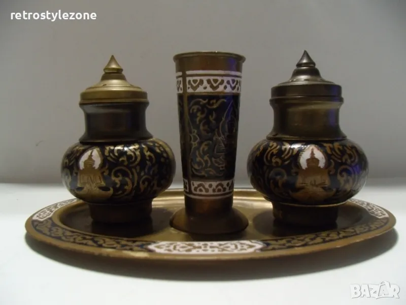 - размери - поднос 12,5 / 8,5 см елипса , солнички - диаметър 6,5 см / 4 см