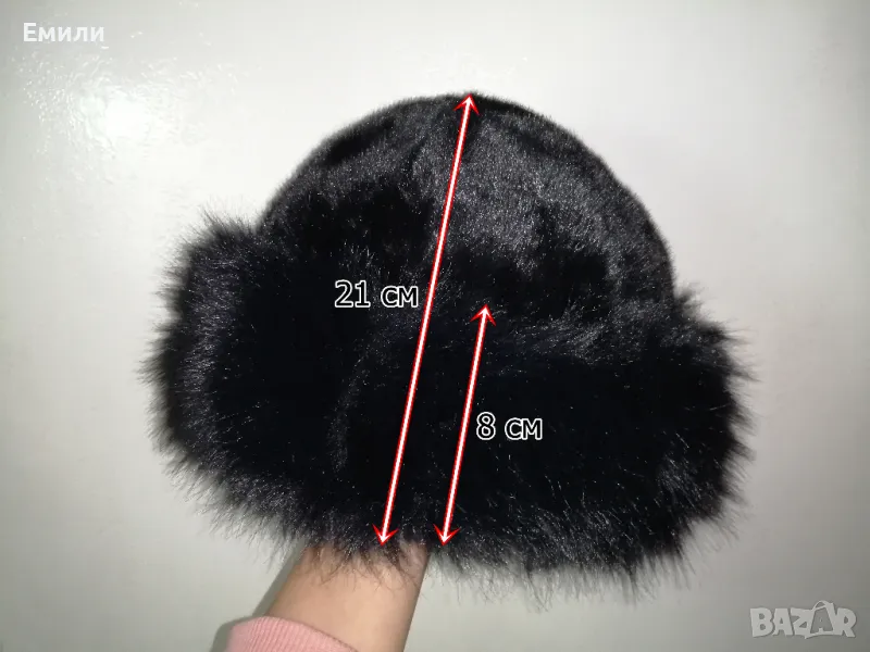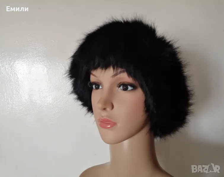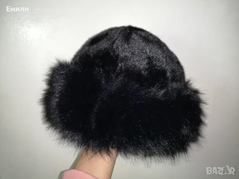 Дамска пухкава шапка в черен цвят → Обява 48420418