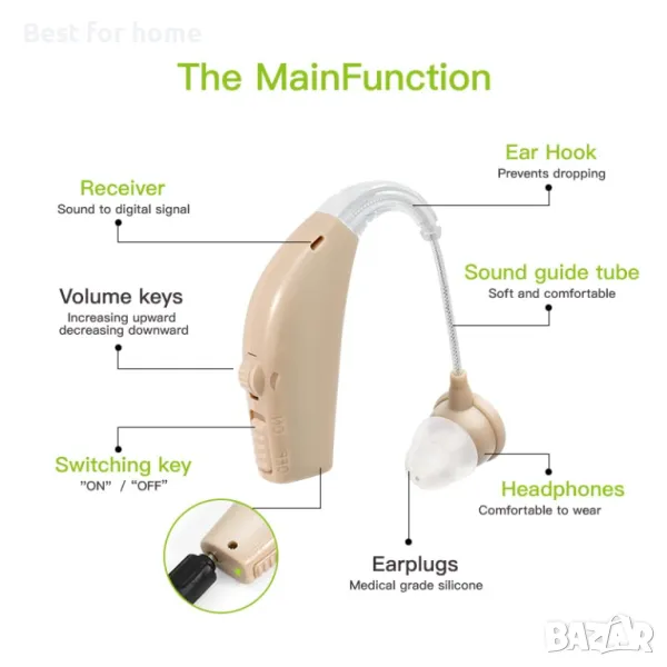 【Лесна работа с един бутон】 Нашите слухови апарати се нуждаят само от един бутон, за да го включат и след това да го носят на ушите, след което всичко е готово. Няма сложни настройки или настройки, особено лесен за употреба за възрастни хора.