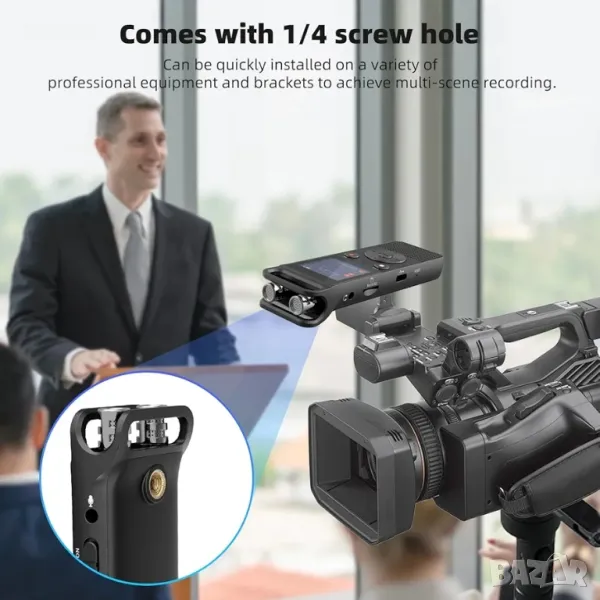 3072 kbps високоефективен микрофон и DSP намаляване на шума: записващото устройство използва 2 високоефективни микрофона с всепосочен насочен модел, 720° запис на съраунд звук и 60 футов запис на живо. Той е оборудван с мощен ANC чип и технология за цифрова обработка на сигнала (DSP), която позволява интелигентно намаляване на шума, така че можете да записвате/възпроизвеждате ясно висококачествени записи. Максималната поддържана битрейт е 3072 kbps.