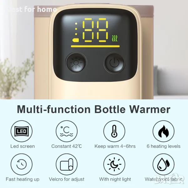 6 нива на настройка на температурата: Нагревателят за бебешки шишета има шест температурни настройки, така че да могат да се задават различни температури според действителните нужди. Пътният нагревател за шишета за кърма може да поддържа бутилката топла до 6 часа за повечето бутилки