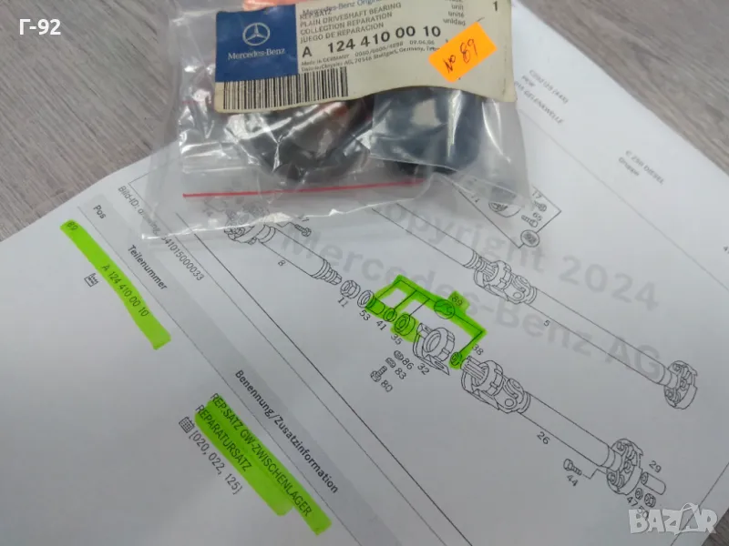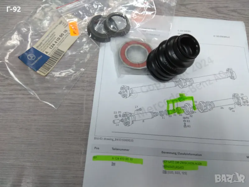 A1244100010**NEU**MERCEDES-BENZ**W201*W124*W202**РЕМОНТЕН К-Т ЗА ОПОРАТА НА КАРДАНИЯТ ВАЛ**