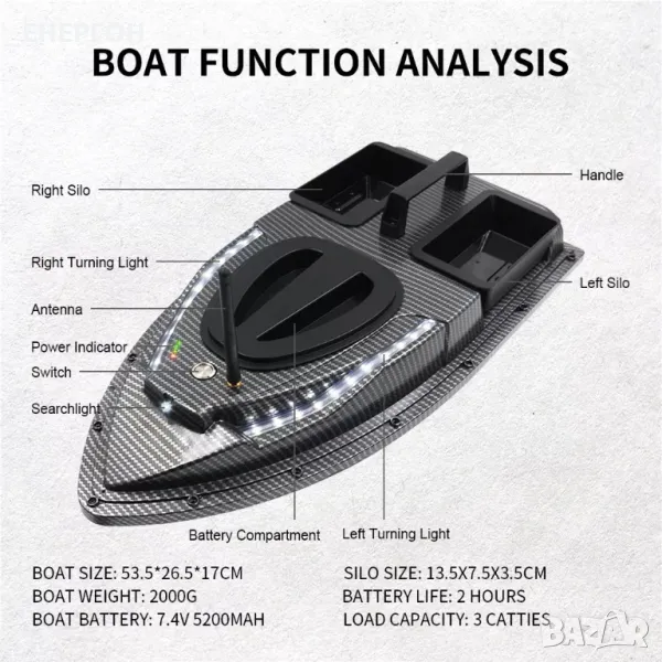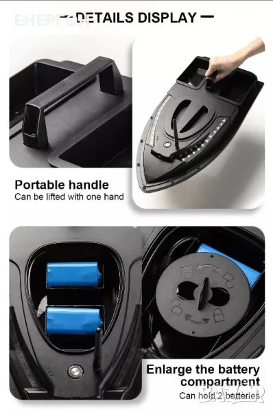 ПРОМО лодка за захранка с GPS ДВЕ Батерии Чанта захранване лодка шаран