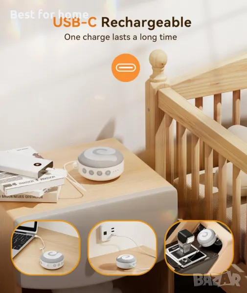 ПРЕЗАРЕЖДАЕМА И ПРЕНОСИМА - USB акумулаторна (включен USB кабел) и преносима с щипка и връзка я правят страхотна звукова машина за пътуване на бебе или в движение. Закачете го на количка, чанта или всичко друго, за да спите спокойно навсякъде. Можете да го управлявате с батерия или да го включите, до 8 часа работа с едно зареждане.