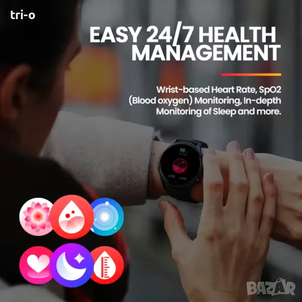 Измерени показатели: Монитор за сърдечен ритъм, други, Монитор за кислород в кръвта, Монитор за сън, Монитор за кръвно налягане
