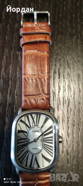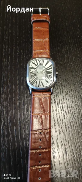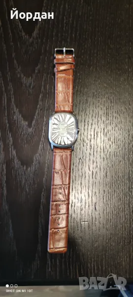 Часовника е като нов.Работи отлично.Дребна забележка на каишката от вътрешната страна която не се вижда.Никога не е носен.