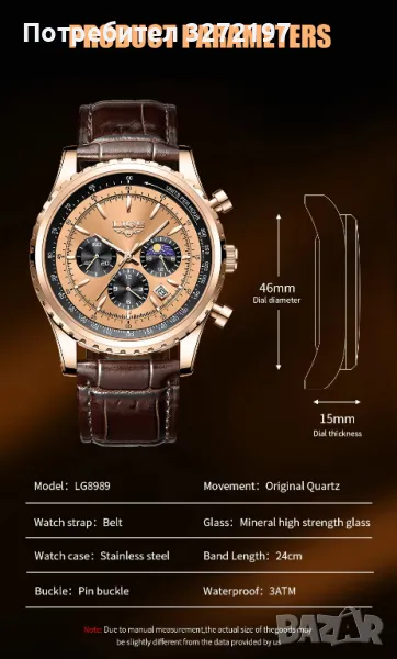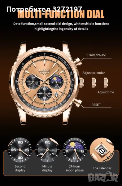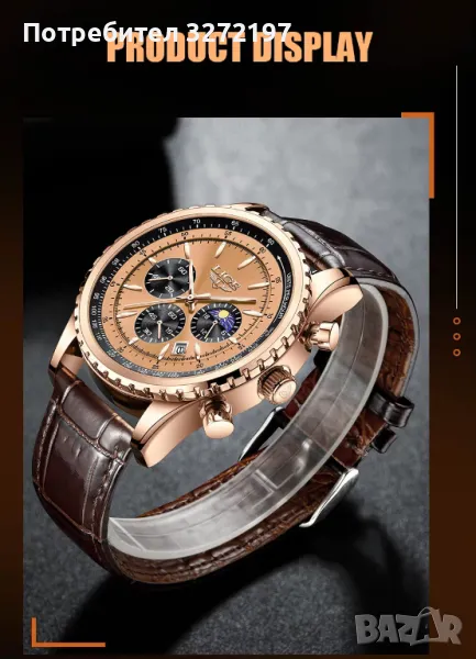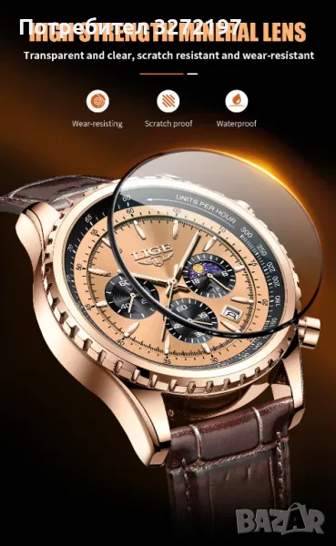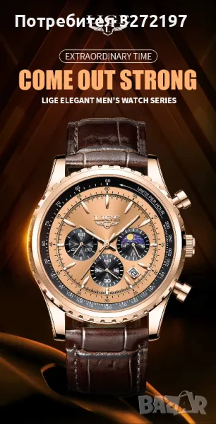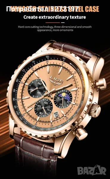 LIGE- кварцов часовник,механизъм Япония,водоустойчив,календар,хронограф