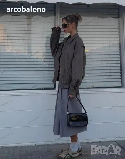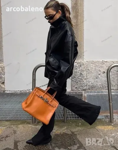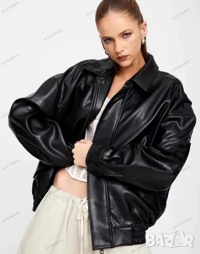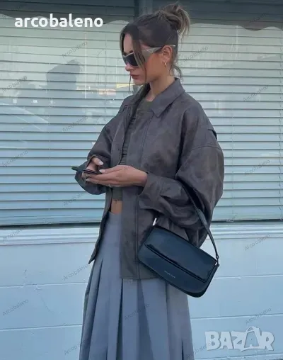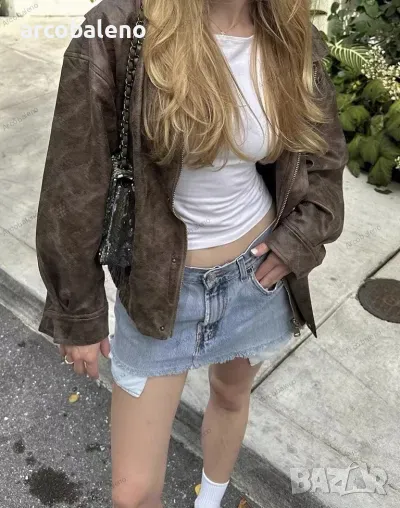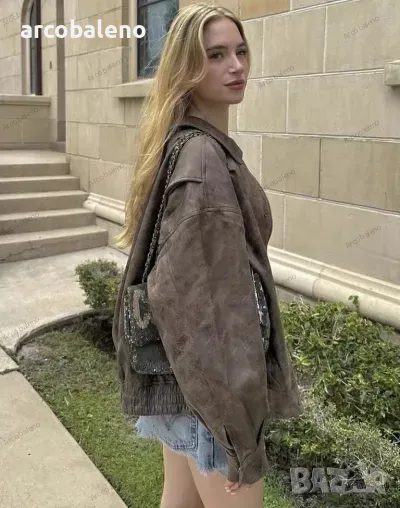 Дамско американско ретро кожено яке с ревер, 2цвята