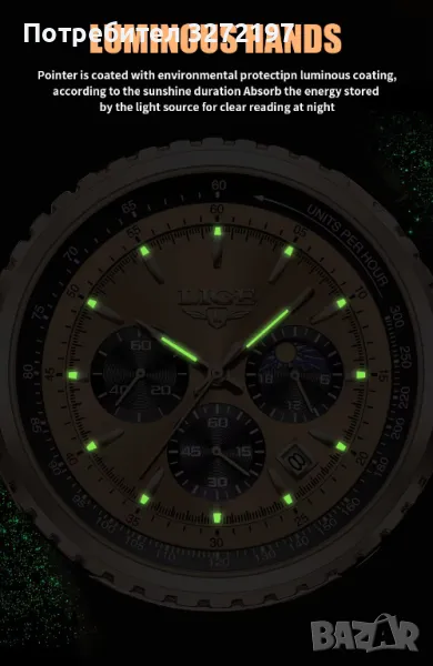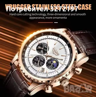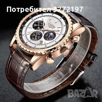 LIGE- кварцов часовник, механизъм Япония,водоустойчив,календар,хронограф