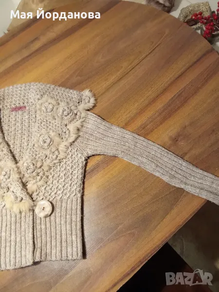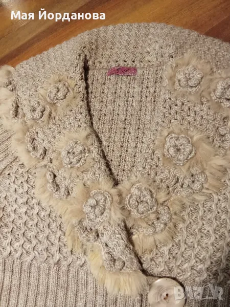 Красива вълнена жилетка, гарнирана с естествени кожички. Става за S,M,L. Цена намалена на 16,00 лв.
