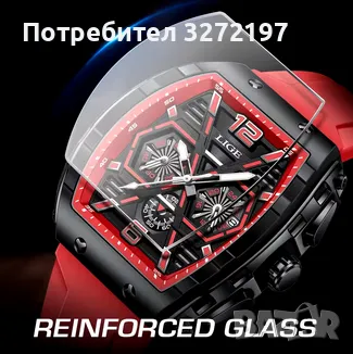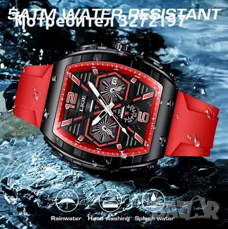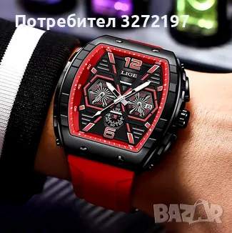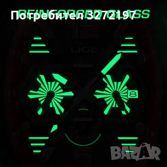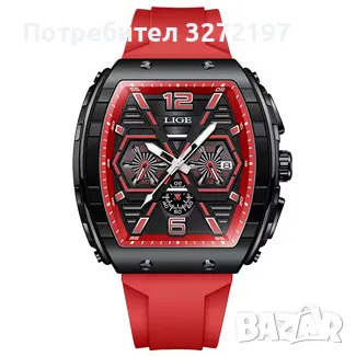 LIGE Кварцов ръчен часовник,Водоустойчив спортен часовник,Силиконова каишка,Хронограф