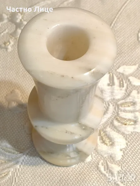 Старинна Прекрасна Българска Соц Бяла Мраморна Ваза Височина 18 см.