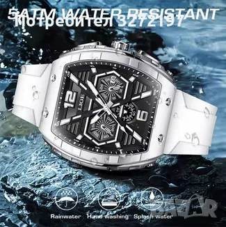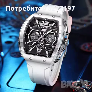 LIGE Кварцов ръчен часовник,Водоустойчив спортен часовник,Силиконова каишка,Хронограф → Обява 48425620