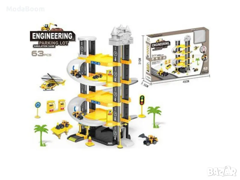 Пететажен паркинг гараж с машини и аксесоари комплект 63 бр