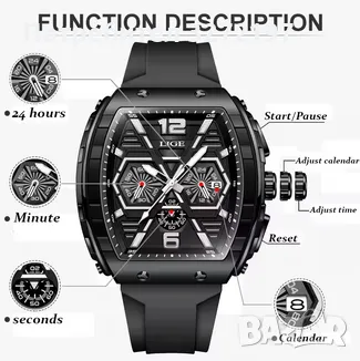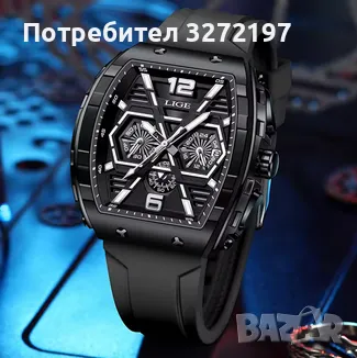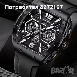 LIGE Кварцов ръчен часовник,Водоустойчив спортен часовник,Силиконова каишка,Хронограф → Обява 48425731