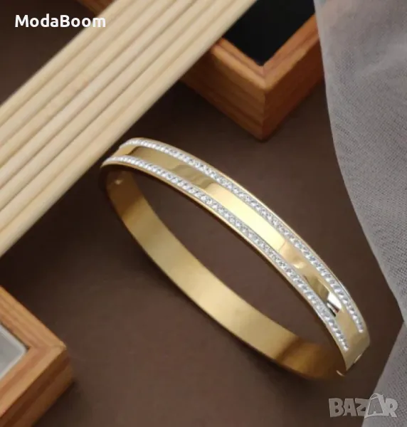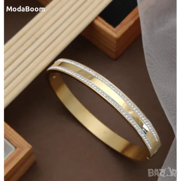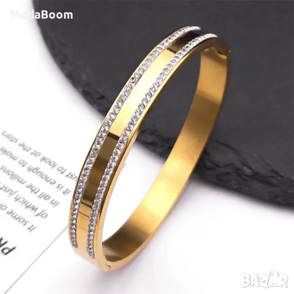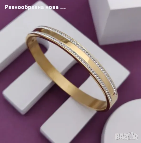 Твърда дамска гривна с камъни цирконии в изискан дизайн → Обява 48425929