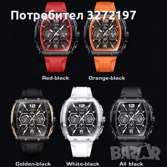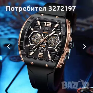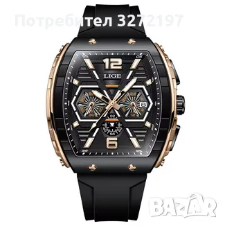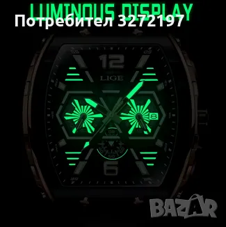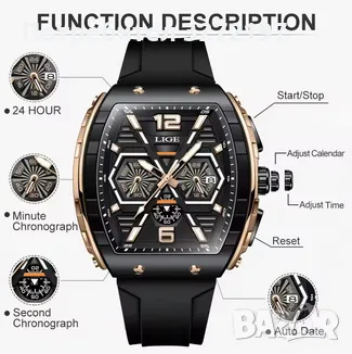 LIGE Кварцов ръчен часовник,Водоустойчив спортен часовник,Силиконова каишка,Хронограф