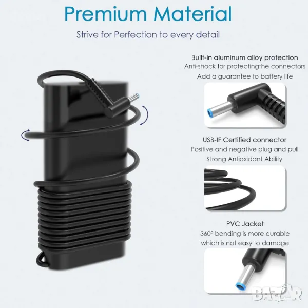 Съвместимо със сериите HP ZBook, OMEN, Pavilion, Victus, Envy, EliteBook и Firefly, това зарядно устройство поддържа широка гама от модели, включително лаптопи за игри и работни станции. Той осигурява стабилен изход 19,5 V/7,7 A 150 W с конектор 4,5*3,0 mm. Сертифициран за безопасност (CE, FCC, CCC, UL), той предлага защита срещу пренапрежение, свръхток и късо съединение, осигурявайки надеждно и сигурно зареждане. Подходящ за високопроизводителни и геймърски лаптопи.