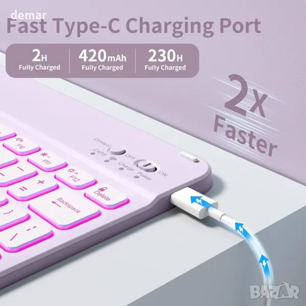 Калъф BQDIYOO с клавиатура за iPad 10-то поколение 10,9 инча, 7 цвята подсветка, лилав