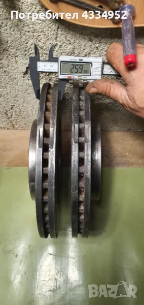 Дисковете са от катастрофирал автомобил.Дебелината им като нови е 26 мм.и както се вижда от снимките тези са с дебелина 25.9 мм почти нови