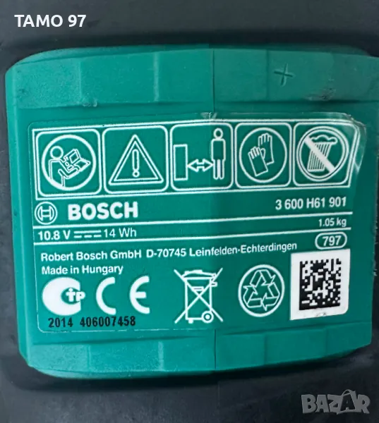 трион на Бош в отлично визуално състояние и работи перфектно, оригинално унгарско производство внос от Франция. Обявената цена е без зарядно, ако се продава със зарядно цената ще е 100лв.