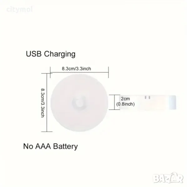 Акумулаторна нощна лампа със сензор за движение и сензор за светлина, автоматично включване/изключва