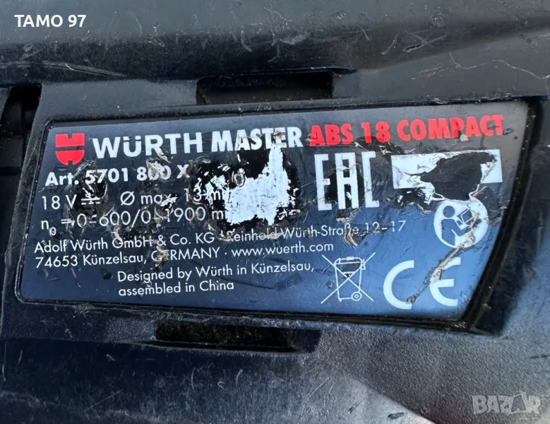 2. Безчетков винтоверт: Wurth ABS 18 Compact