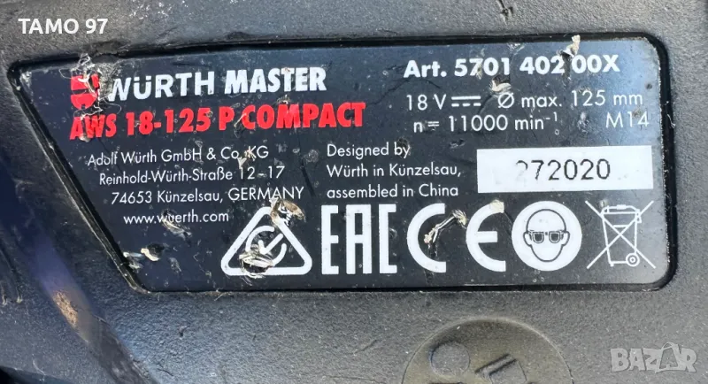 3. Безчетков ъглошлайф: Wurth AWS 18-125 P Compact
