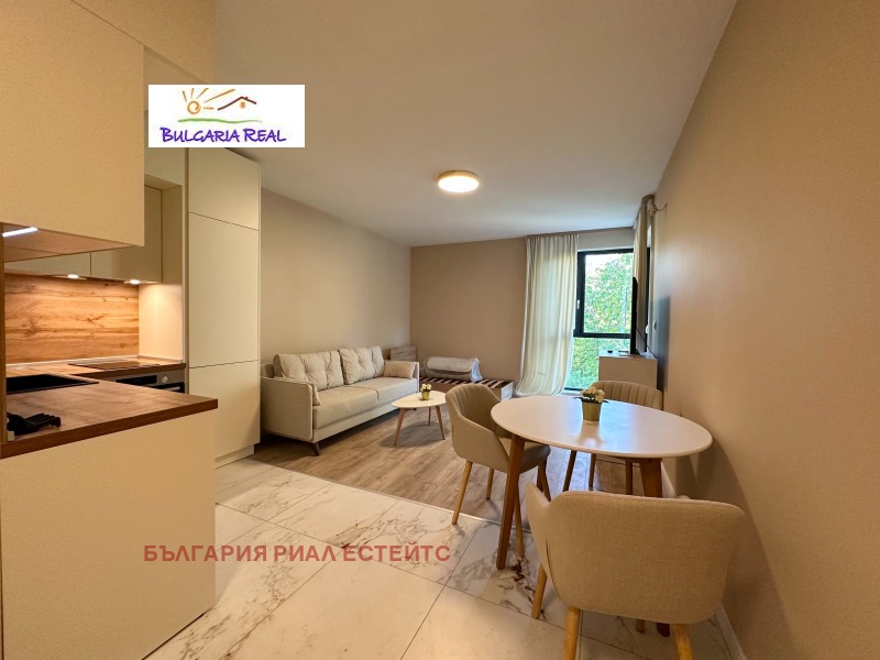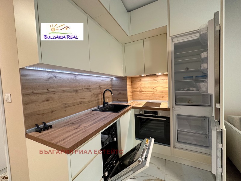 Апартамента е с изложение юг-изток, изключително слънчев и светъл, обзаведен с много вкус и внимание към всеки детайл. Кухнята е висок клас изработена от МДФ с италиански механизми и оборудвана с електроуреди Bosh.