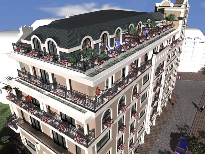 Сградата се състои от 7 етажа и се предлага разнообразие от двустайни, тристайни и четиристайни апартаменти, с квадратури от 45 до 160 кв.м., магазини с площ от 25 до 160кв.м. и подземни паркоместа, които са достатъчни да задоволят нуждите на съвременните семейства. Жилищния комплекс разполага и с озеленен вътрешен двор, зони за отдих и детска площадка.