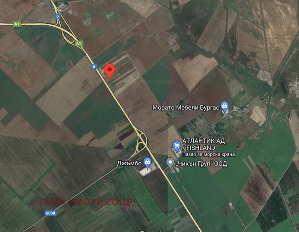 Поземлен имот с площ от 55990 кв.м. и 107 метра лице на пътя Бургас - София, на един километър след отклонението за Лукойл Нефтохим , в местност Оникилика . Дълбочината му е 510 метра. Парцелът е равен и е с правоъгълна форма. Имотът е със статут на земеделска земя, но има мотивирано предписание за промяна на предназначението за промишлено строителство, с показатели: Кинт 3. Плътност 30%, Височна 15 метра. Имотът е в непосредствена близост до зона ''Бизнес парк 3'', според ОУП на гр. Бургас.