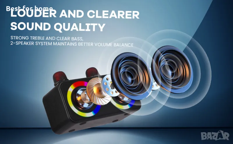 【Изключително качество на звука】Качеството на звука е добро и ясно, с дълбок бас. Сигналът беше стабилен, без смущения и доста мощен, благодарение на 15W мощност на вградения високоговорител.