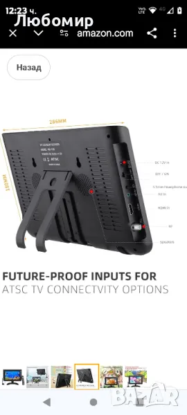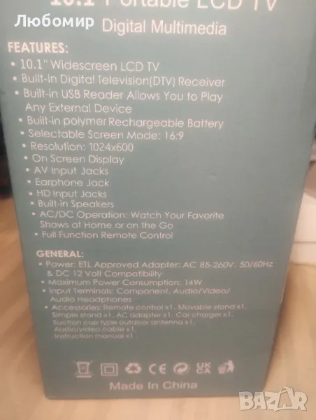 10,1-инчов преносим телевизор, батерии, 720P екран, телевизор с антена и ATSC цифров тунер, HDMI