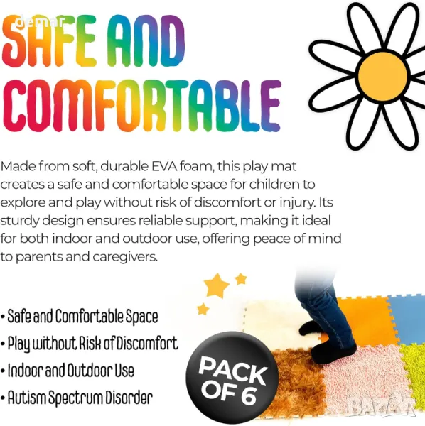 Тази сензорна постелка за игра съчетава тактилна стимулация и интерактивно забавление, подпомагайки сетивното развитие и когнитивните умения. Идеален за деца с аутизъм, той насърчава фините двигателни умения и креативността чрез ангажиращи текстури и шарки. С шест универсални плочки, той може да се използва като пъзел, подово пространство или сензорна стена, отговаряйки на различни нужди на развитието в безопасен дизайн, подходящ за аутизъм.