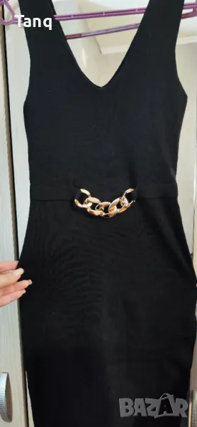 Дамска рокля с ефектен акцент. Роклята е нова. Финно машинно плетиво, голяма еластичност.