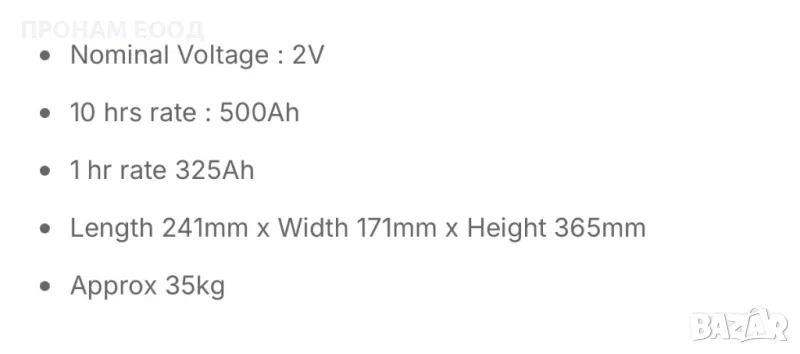 Акумулатор « Furukawa » 2V 500 Ah, снимка 1 - Аксесоари и консумативи - 48432457 Акумулатор « Furukawa » 2V 500 Ah, снимка 2 - Аксесоари и консумативи - 48432457 Акумулатор « Furukawa » 2V 500 Ah, снимка 3 - Аксесоари и консумативи - 48432457 Акумулатор « Furukawa » 2V 500 Ah, снимка 4 - Аксесоари и консумативи - 48432457 Акумулатор « Furukawa » 2V 500 Ah, снимка 5 - Аксесоари и консумативи - 48432457 1/5