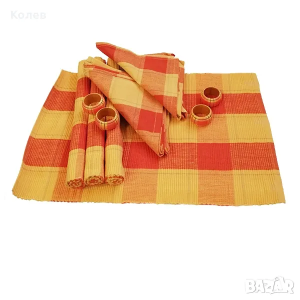подложки за сервиране, салфетки и пръстени ЖЪЛТО И ОРАНЖЕВО 12 части, снимка 1 - Други - 48432532 подложки за сервиране, салфетки и пръстени ЖЪЛТО И ОРАНЖЕВО 12 части, снимка 2 - Други - 48432532 1/2