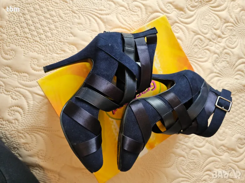 Промо - 25лв! Обувки на висок ток, стил балерина, еко велур и сатен, син цвят, снимка 1 - Дамски обувки на ток - 48433034 Промо - 25лв! Обувки на висок ток, стил балерина, еко велур и сатен, син цвят, снимка 2 - Дамски обувки на ток - 48433034 1/2